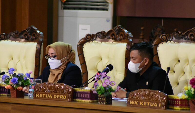 MUSI RAWAS  – Bupati Musi Rawas Hj Ratna Machmud hadiri Rapat Paripurna DPRD dalam Rangka Mendengarkan Pandangan Umum Fraksi-Fraksi Dewan Atas Penyampaian Nota Keuangan dan Raperda APBD Perubahan Kabupaten Musi Rawas Tahun Anggaran 2021 di Ruang Rapat Paripurna DPRD Musi Rawas, Rabu (22/9/2021).