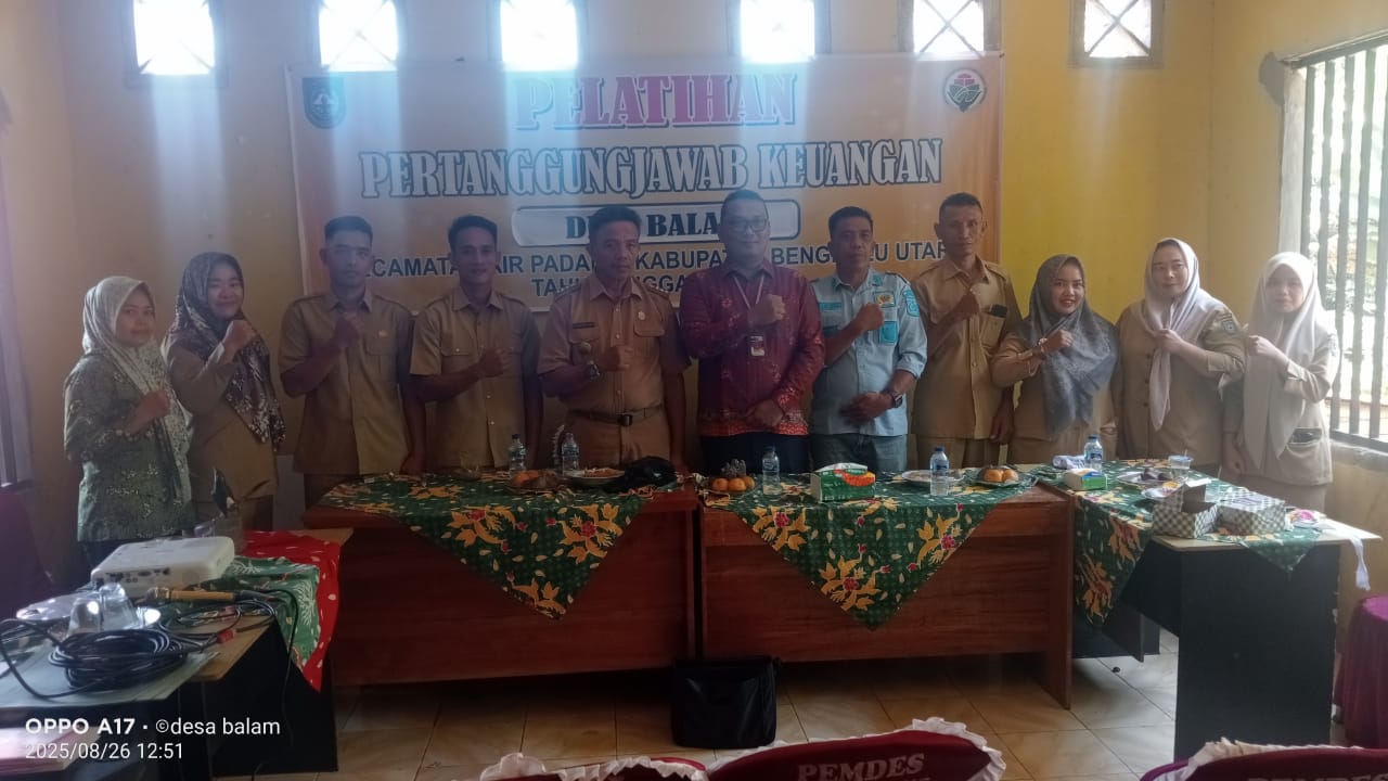 PAGUCINEWS.COM – Pemdes Balam Kecamatan Air Padang Kabupaten Bengkulu Utara melaksanakan pelatihan Laporan Pertanggungjawaban Pengelolaan Keuangan Desa.
