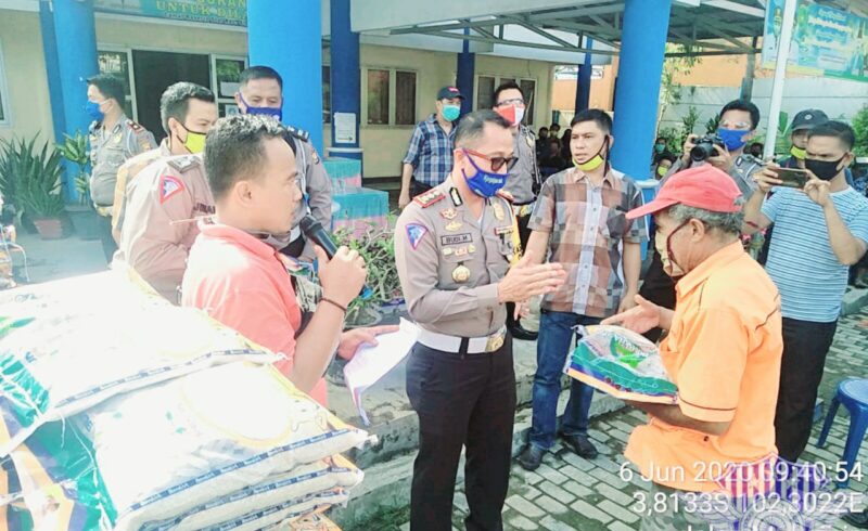 Tak hanya menyampaikan edukasi dan penyuluhan kamseltibcar lantas melalui sarana Angkutan Umum, Jajaran Direktorat Lalu Lintas Polda Bengkulu juga memberikan paket bahan pokok sebagai kepedulian polri terhadap masyarakat ditengah pandemi covid-19.(AdV)