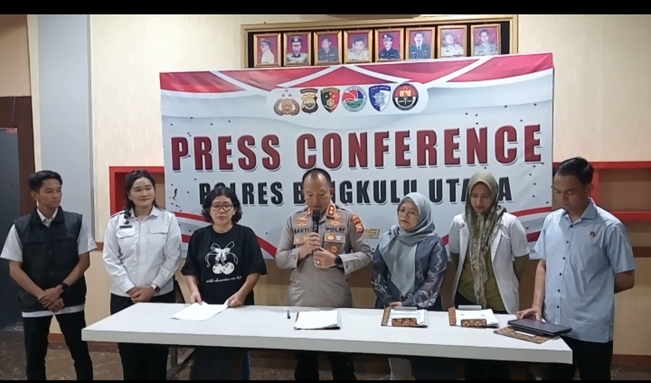 Press Conference tersebut berlangsung di Markas Polres Bengkulu Utara dipimpin langsung Kapolres AKBP Bakti Kautsar Ali, dihadiri oleh jajaran terkait, termasuk dokter dari Rumah Sakit Bhayangkara Bengkulu, dokter dari Rumah Sakit Tiara Sela, perwakilan Dinas Kesehatan Bengkulu Utara, serta tim ahli gizi dari Satuan Pelayanan Pemenuhan Gizi (SPPG) Provinsi Bengkulu. Selasa (3/3/2026) malam.